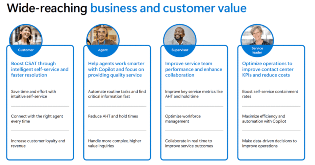 - Supports omnichannel capabilities and tools such as IVR, chatbots, sentiment analysis, and live transcription.